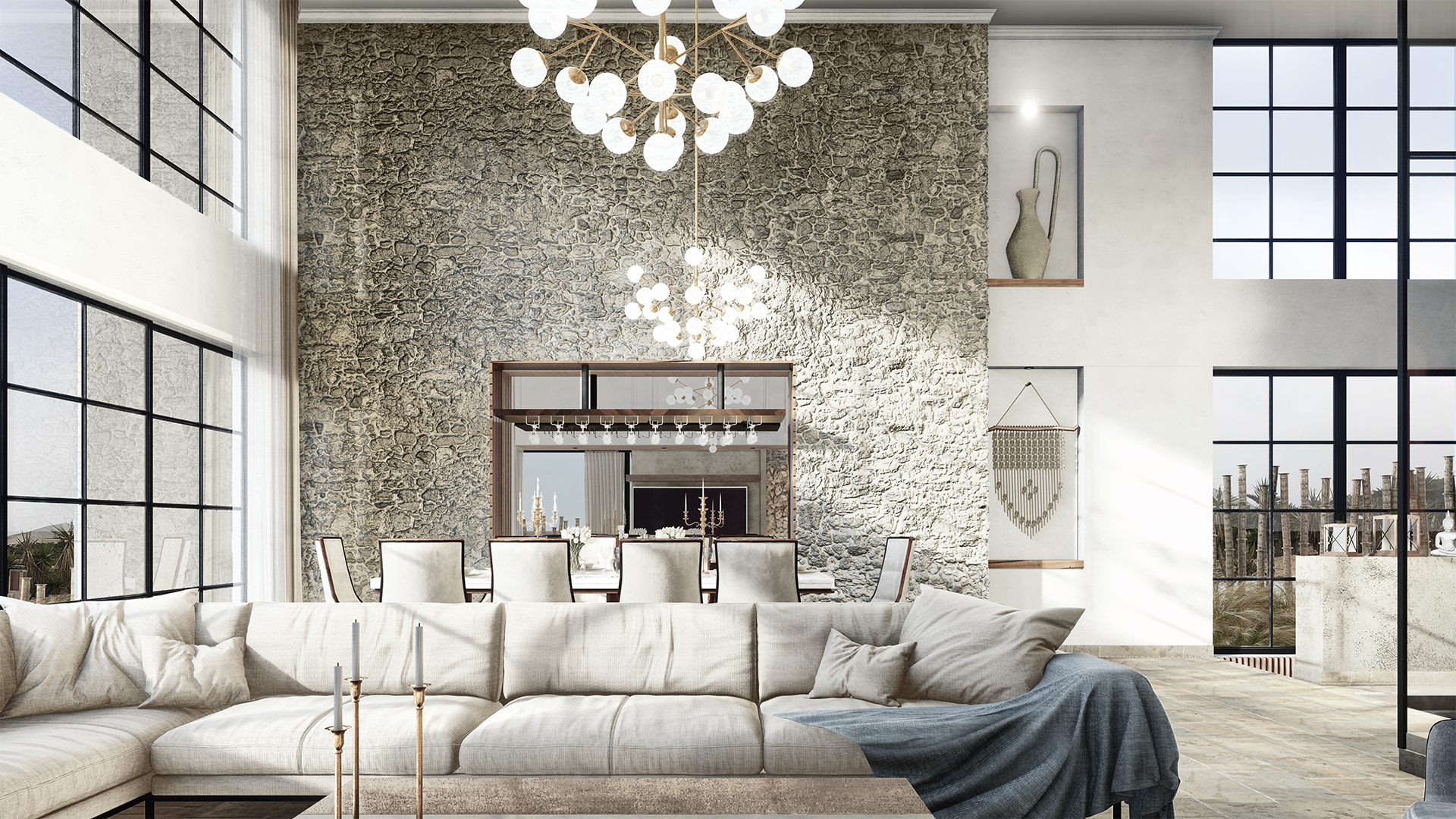 El ingreso a la vivienda consiste en un cubo de doble altura como espacio articulador de la vivienda, conteniendo las áreas sociales con grandes ventanales que bañan el espacio de luz natural y permien una vista panorámica del paisaje hacia los balnearios.